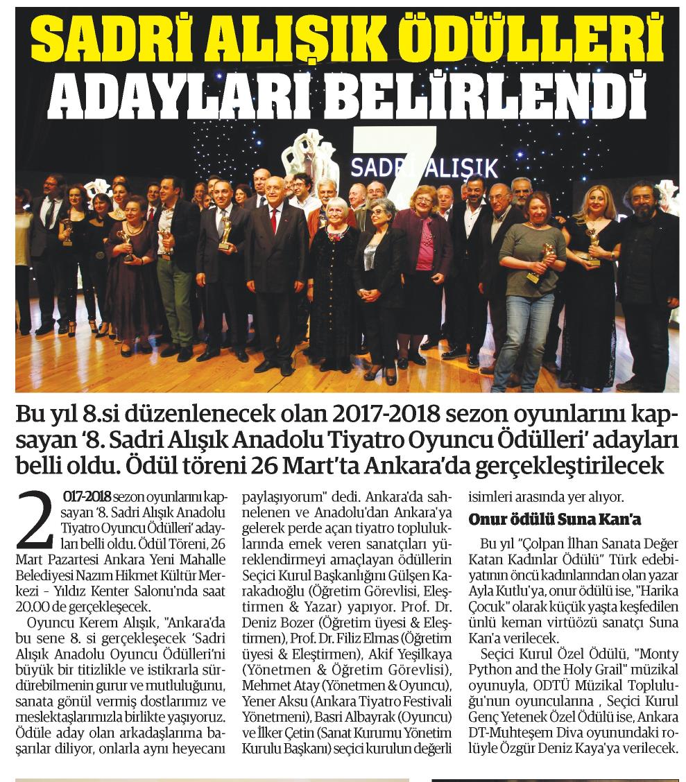 SADRİ ALIŞIK ÖDÜLLERİ ADAYLARI BELİRLENDİ