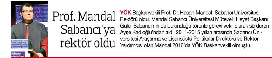 PROF. MANDAL SABANCI'YA REKTÖR OLDU